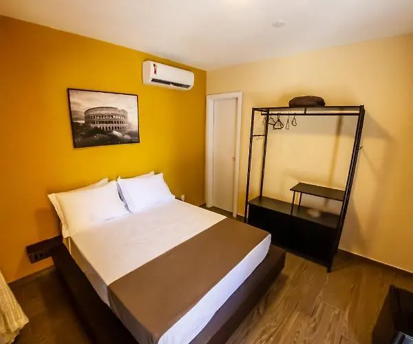 O hotel oferece 51 quartos com vista para o pátio, bem como escrivaninha e TV via satelite. O banheiro está equipado com bidé, banheiro separado e chuveiro.
